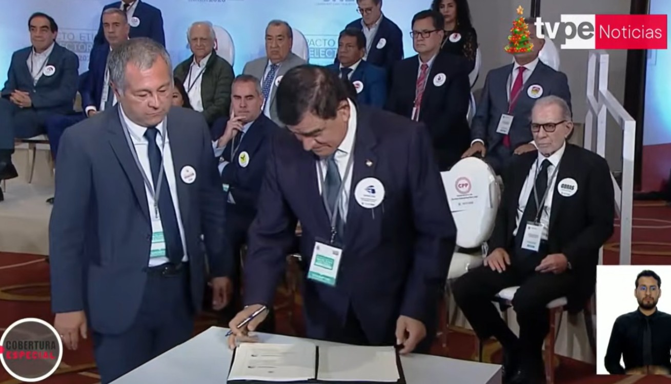 Suscripción del Pacto Ético Electoral para las Elecciones Generales 2026 por TVPerú Noticias EN VIVO. Foto: Andina.